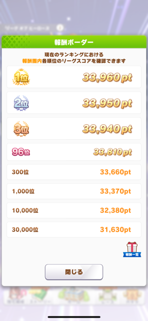 私の結果は32,040ptで17,760位でした。上記の統計によれば、上位4%には入っていそうです。そう思うと感慨深いものがあります。今まで自分がトレーナー全体の中でどのくらいの位置にいるか知る術がなかったので、今回からのランキング表示は面白いなと個人的には思っています。